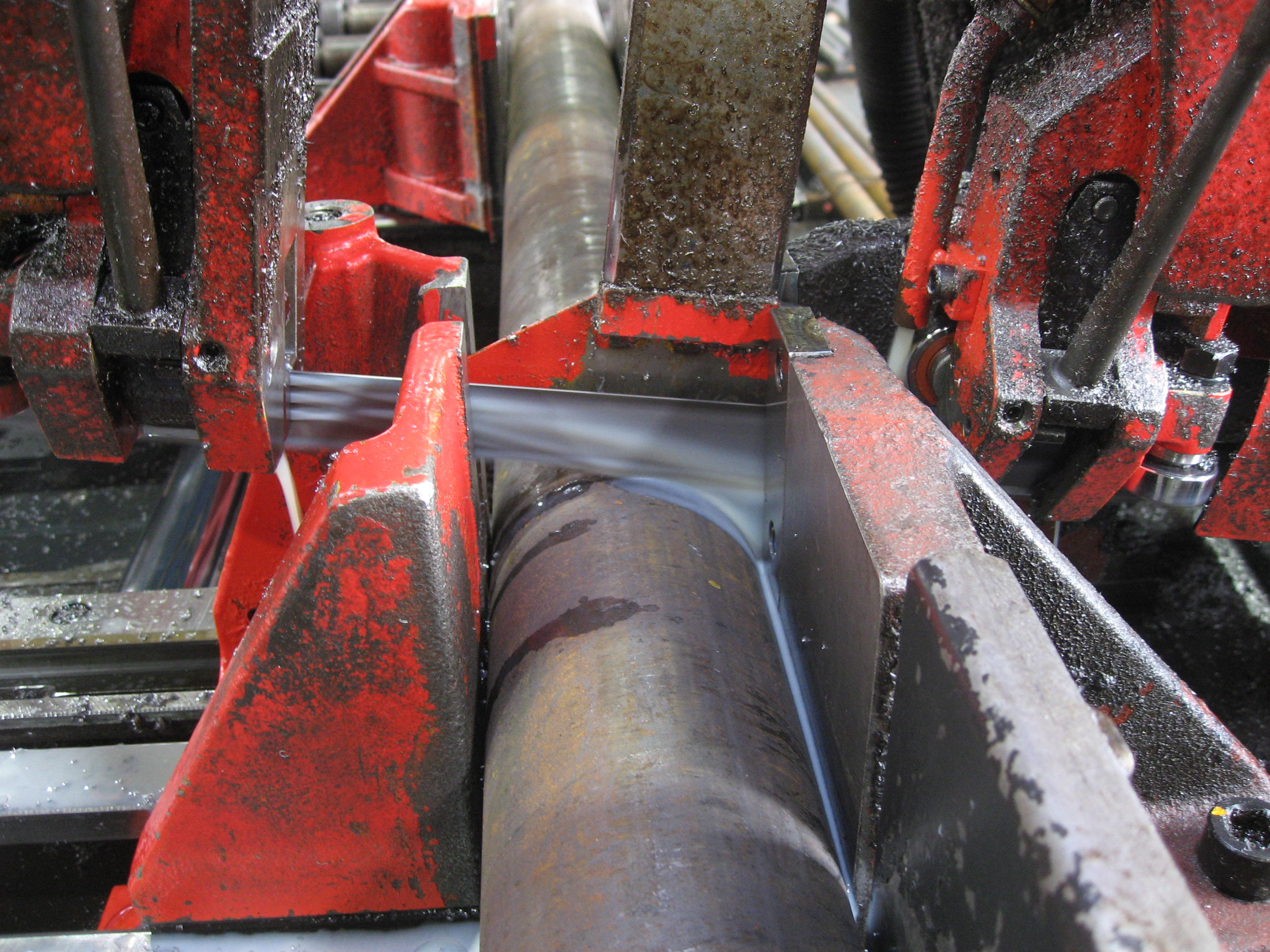 リング状ののこぎりが回転しながらゆっくりと下がり、切って行きます。
